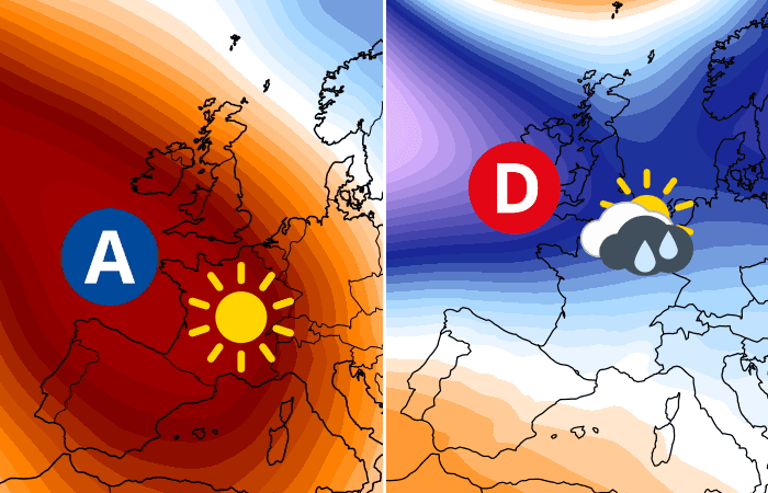 Depuis plusieurs années, nous vous avons régulièrement parlé des longues séquences de temps calme et anticyclonique en France. En effet, ces situation de blocage ont été anormalement nombreuses avec des anomalies de hautes pressions perdurant parfois durant de longs mois, comme ce fut le cas à l'hiver 2021-2022 et au printemps 2022 (cartes ci-dessous). Ainsi, nous pouvions connaître des semestres entiers de domination anticyclonique, durant lesquels les journées instables étaient très peu nombreuses et la pluviométrie largement déficitaire.