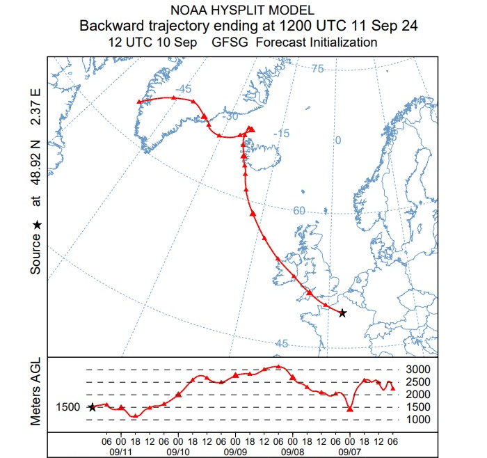 Provenance de la masse d'air atteignant Paris ce mercredi 11 septembre 2024 - NOAA