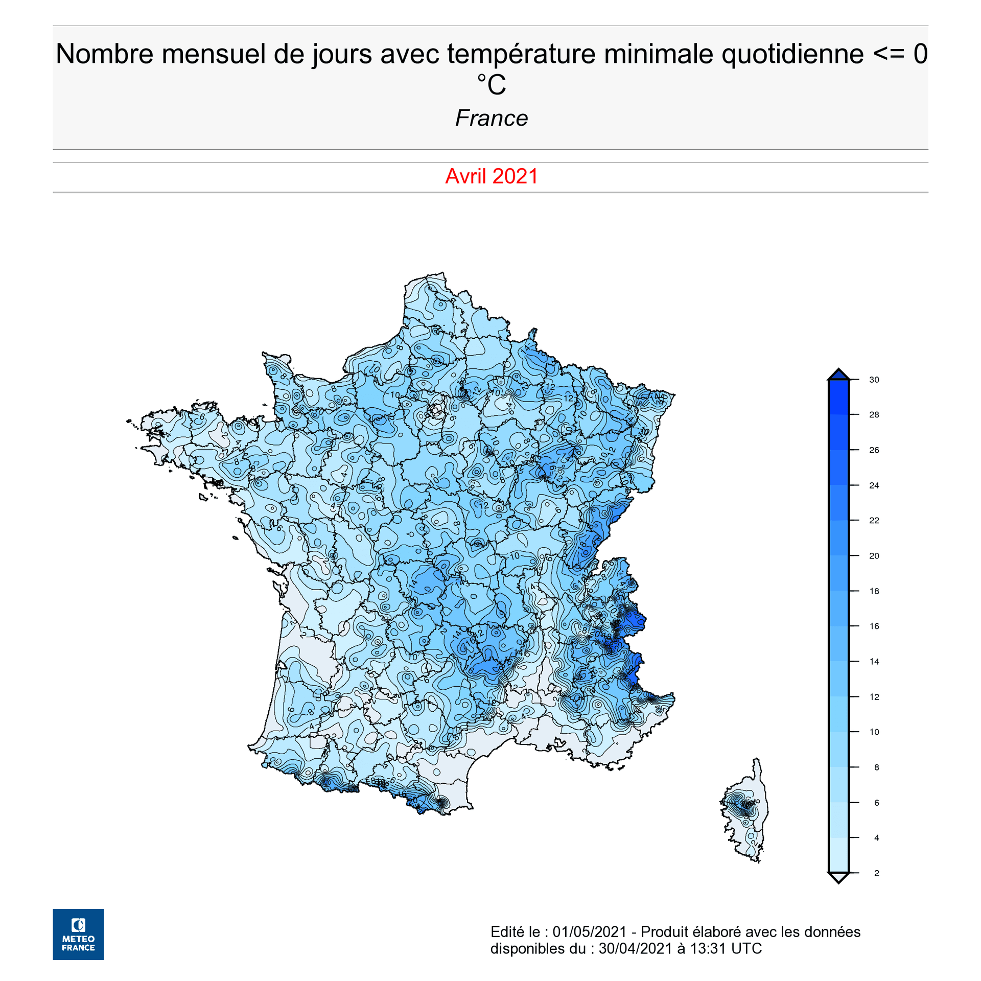 Nombre de jours de gelées en France sur le mois d’avril 2021 – Météo-France