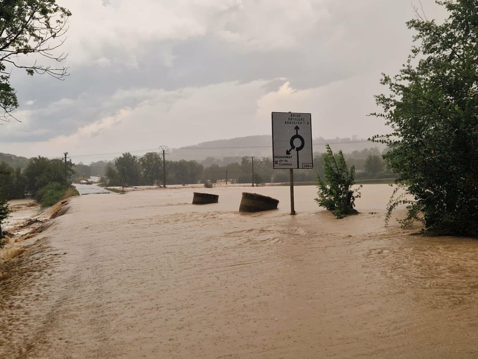 Toujours en soirée du lundi 14 août 2023, un orage diluvien s'est abattu sur le nord-est du département du Lot. C'est le secteur de Saint-Céré qui fut le plus touché avec un orage stationnaire durant quasiment deux heures ! Des cumuls de pluie de l'ordre de 100 à 150 mm se sont abattus sur le secteur, engendrant des inondations locales mais importantes. Plusieurs axes routiers ont notamment été coupés.