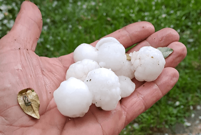 Grêlons de 4 cm de diamètre à l’Isle-Arné (32) ce lundi 8 avril 2024 – photo François Polesello