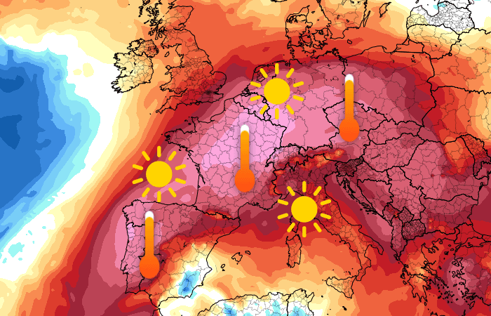 C'est surtout en début de semaine prochaine que le dôme de chaleur devrait se renforcer au dessus de la France. Selon la plupart des scénarios, les températures de la masse d'air au dessus de l'hexagone seraient alors 8 à 14°C au dessus des normales saisonnières ! Au sol, cela se traduirait par un soleil de plomb et des températures excessivement élevées, aussi bien durant les nuits que durant les journées. Les seuils de canicule pourraient alors être franchis sur de plus nombreuses régions.