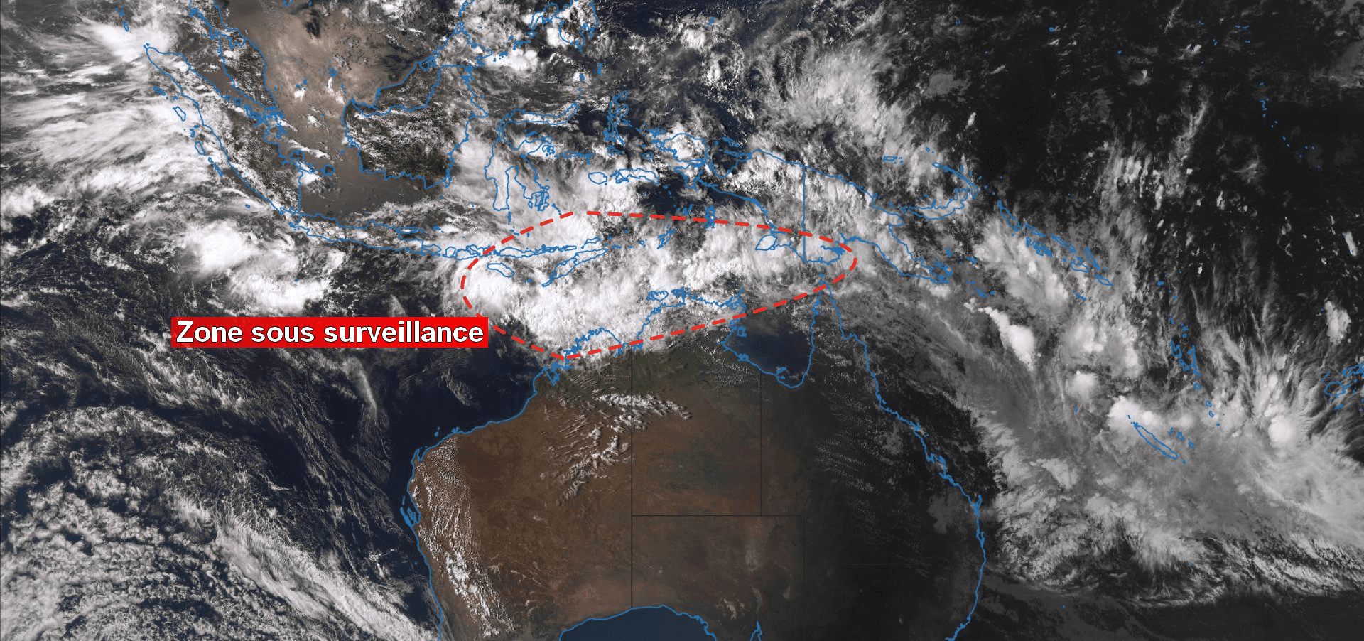 Le Bureau Of Meteorology (service de prévision national australien) place d’ailleurs cette zone très instable en surveillance pour les prochains jours, le risque de formation de tempête/cyclone tropical s’accentuant en mer de Timor notamment.