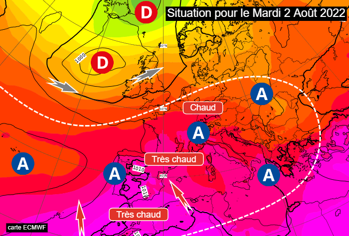 Situation générale prévue - mardi 2 août 2022 - via ECMWF