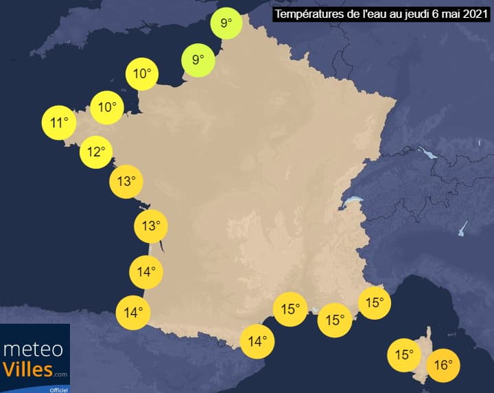 Températures de l'eau sur les littoraux français ce jeudi 6 mai 2021 - Météo Villes