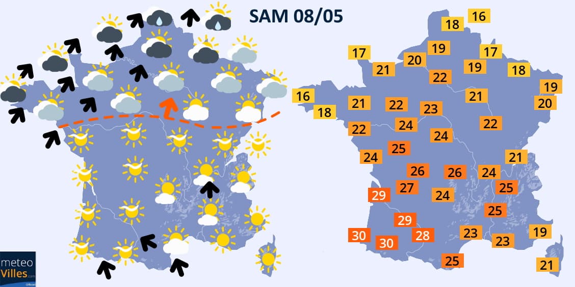 Prévisions du temps et des températures pour le samedi 8 mai 2021 - Météo Villes