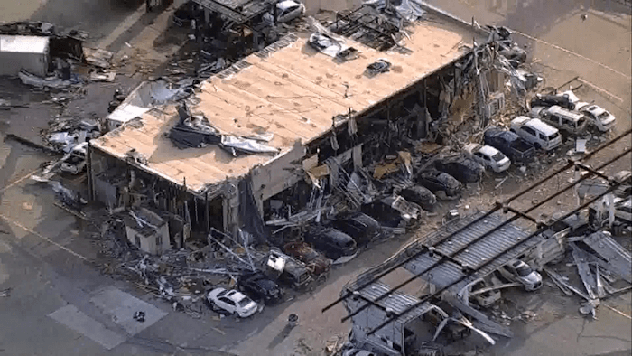 Station service ravagée par la tornade dans le Comté de Cooke (Texas) le samedi 25 mai 2024 - via WFAA
