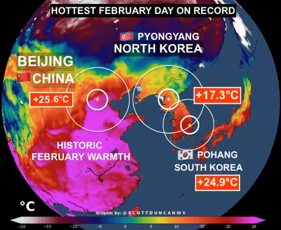 Records de chaleur en Asie le dimanche 21 février 2021 - via Scott Duncan