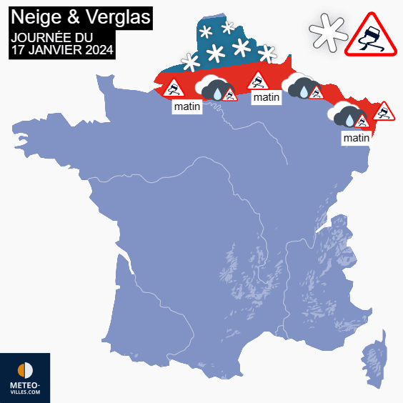 Risque de neige et de pluie verglaçante en journée du mercredi 17 janvier 2024 - Météo Villes