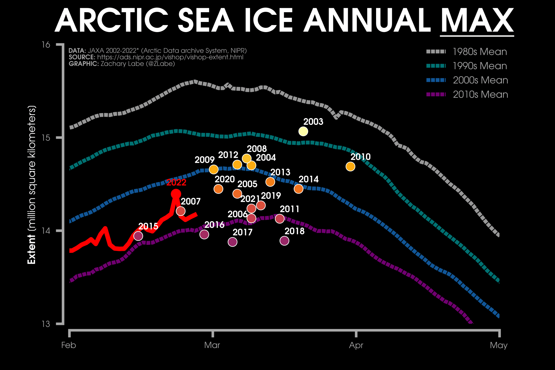 Évolution de la banquise arctique durant le mois de février 2022 – Zachary Labe – JAXA