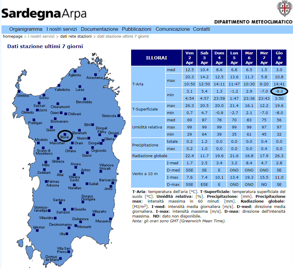 Record régional mensuel de froid en Sardaigne le 7 avril dernier – Via SardegnaArpa