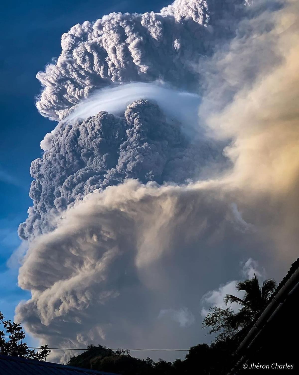Impressionnante photographie de la première éruption de la Soufrière de Saint-Vincent le 9 avril dernier – Photographie via twitter : @jheronc