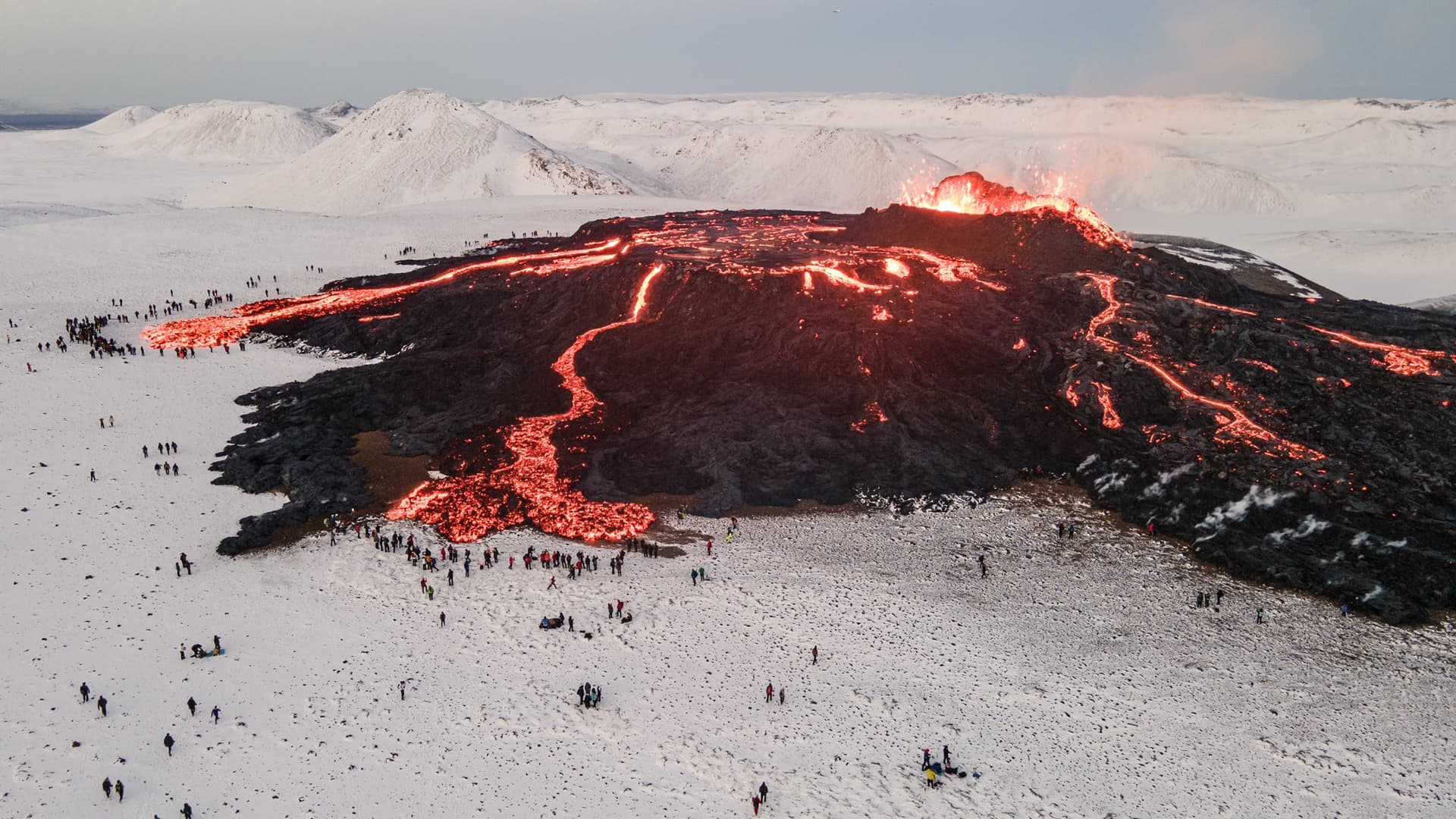 Eruption du Fagradalsfjall le 9 avril dernier - Photographie via twitter : @brianemfinger