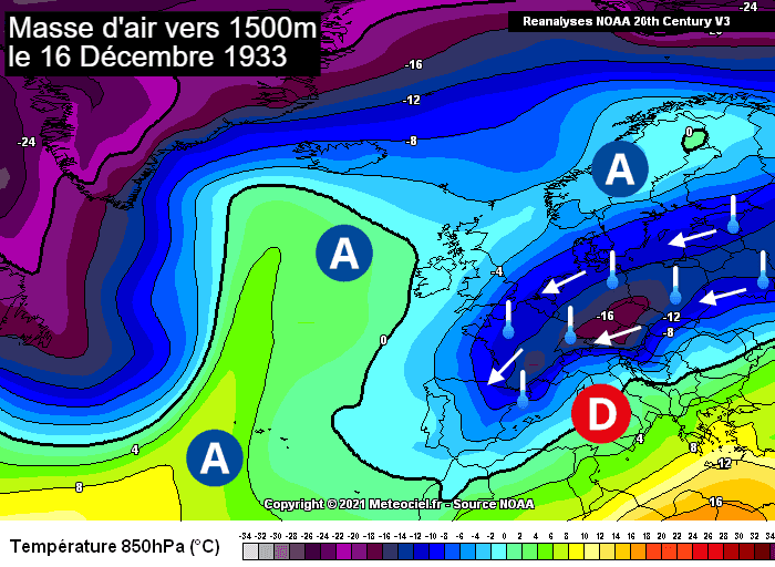 Réanalyse de la masse d'air vers 1500m le 16 décembre 1933 - meteociel.fr