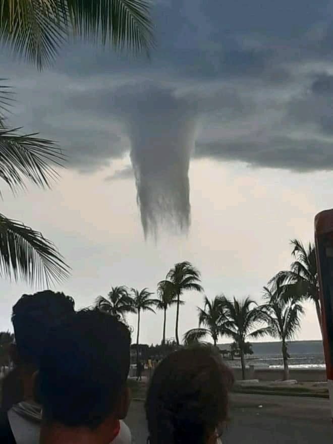Autre phénomène tourbillonnaire impressionnant, une trombe marine imposante a été observée en journée du 16 octobre dernier dans la baie de Cienfuegos à Cuba sous une cellule orageuse stationnaire. Celle-ci s'est heureusement dissipée avant de toucher terre.