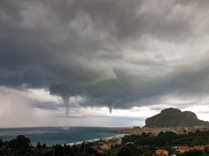 Double trombe marine en matinée du 14 octobre sur le littoral de Cefalù, Sicile – Giovanna Tumminello