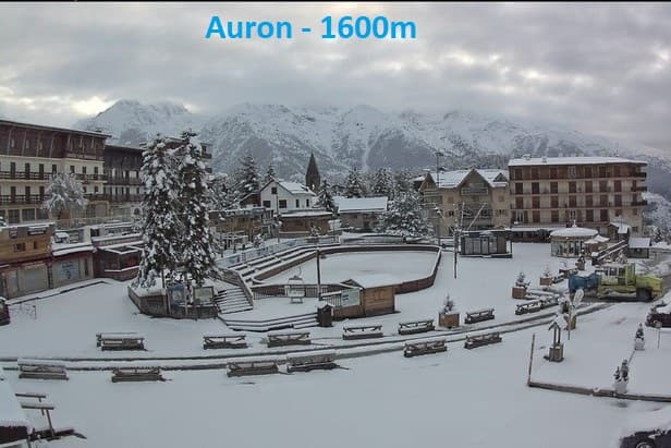 Enneigement à Auron village, 1600m, 15cm à 20cm de neige étaient présents (30cm à Isola 2000) - Webcam des Stations Nice Côte d'Azur