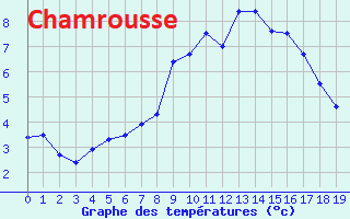 Evolution des températures en Isère, à Varcès (250m) et Chamrousse (1730m) le 11 avril 2021 - Meteociel