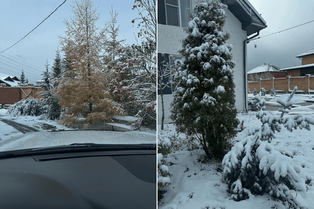 Ces températures basses se sont accompagnées de chutes de neige parfois importantes, causant des coupures d'électricité dans certains secteurs. Il faut dire que l'étendue de la neige au sol est vaste en Sibérie, assez largement au dessus des normales d'un début octobre. Ci-dessous, la ville d'Irkoutsk est déjà recouverte de neige alors que les couleurs de l'automne sont encore présentes dans le paysage. Cette ville est située dans le sud de la Sibérie, à une latitude de 52° nord, semblable à celle d'Amsterdam. Normalement, la température moyenne de l'après-midi se situe encore vers 11°C début octobre.