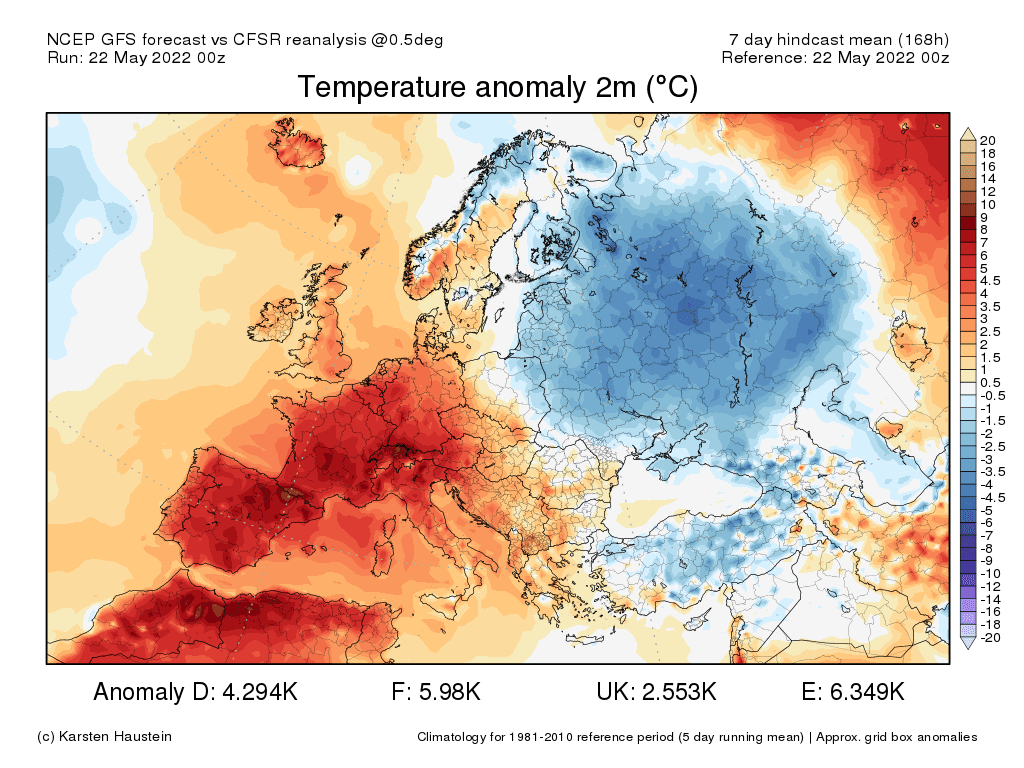 Anomalies de températures observées - du 15 au 21 mai 2022 - Karsten Haustein