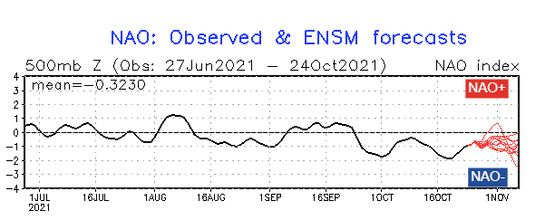 Indice d'oscillation nord-atlantique (NAO) du 27 juin au 24 octobre 2021 - via NOAA