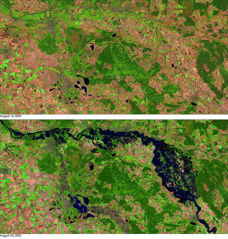 Image satellite montrant l'ampleur des inondations sur l'Elbe en août 2002 - NASA