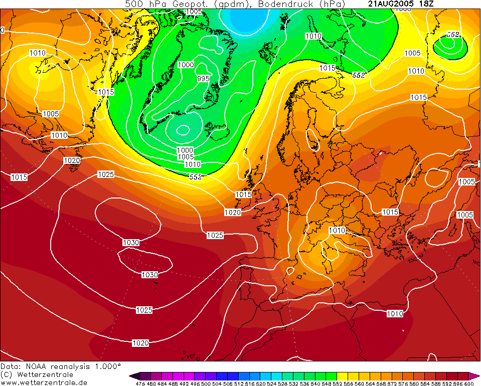 Réanalyse de la situation atmosphérique en août 2005 sur l'Europe - Via Wetterzentrale