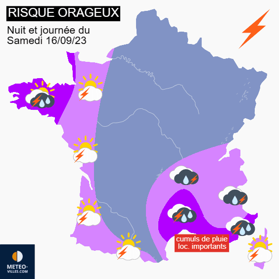 Risque orageux pour la nuit et la journée du samedi 16 septembre 2023 - Météo Villes