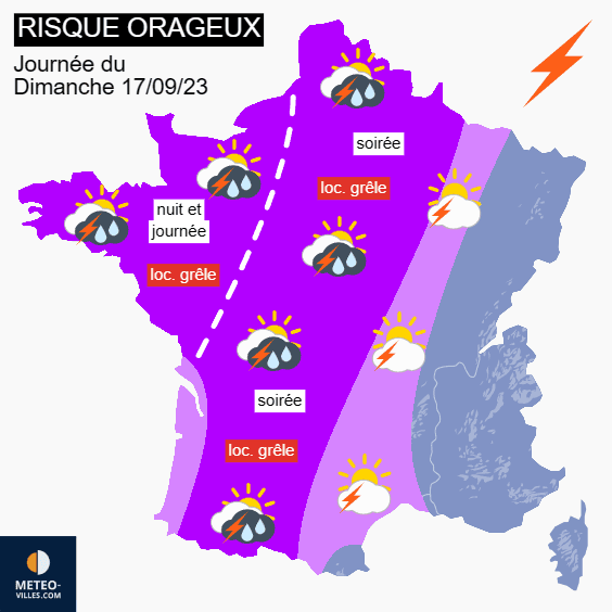 Risque orageux pour la journée du dimanche 17 septembre 2023 - Météo Villes