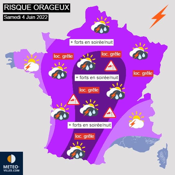 Carte du risque orageux en France pour le samedi 4 juin 2022 - Météo Villes