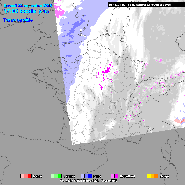 Après minuit et jusqu’en fin de nuit, les chutes de neige s’étendront à l’orléanais, à la Champagne, à une partie de la Bourgogne et au Massif central où des inversions de température pourraient entraîner des pluies verglaçantes.  De plus, il n’est pas exclu qu’un épisode de pluies verglaçantes touche également une partie des régions du nord-est, ainsi que la Bourgogne et éventuellement le Centre.