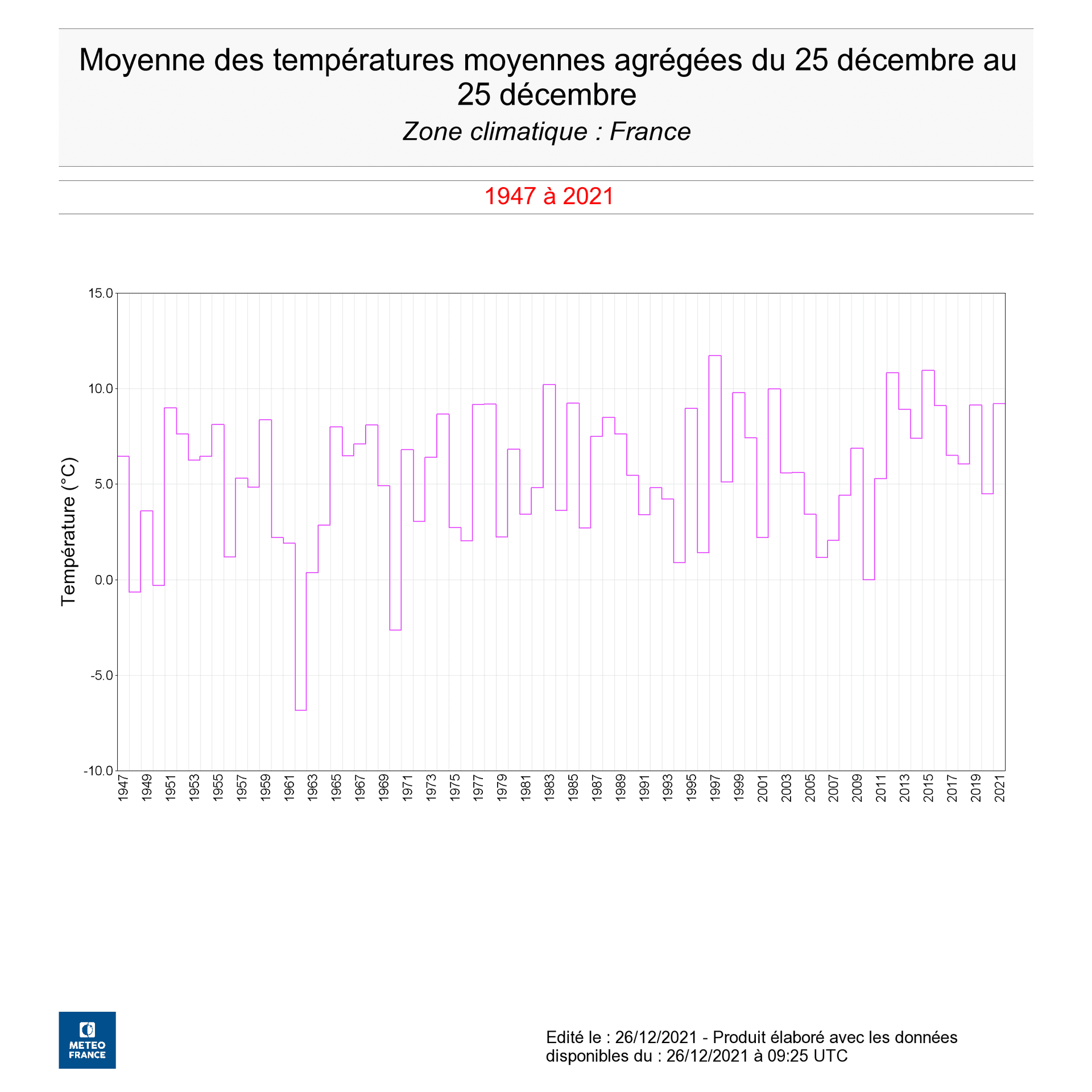 Indicateur thermique national les 25 décembre depuis 1947 - Météo-France / Twitter Gaetan Heymes