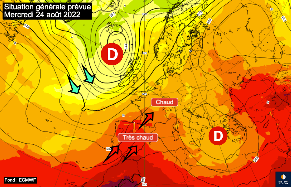 Situation générale prévue - journée du mercredi 24 août 2022 - ECMWF