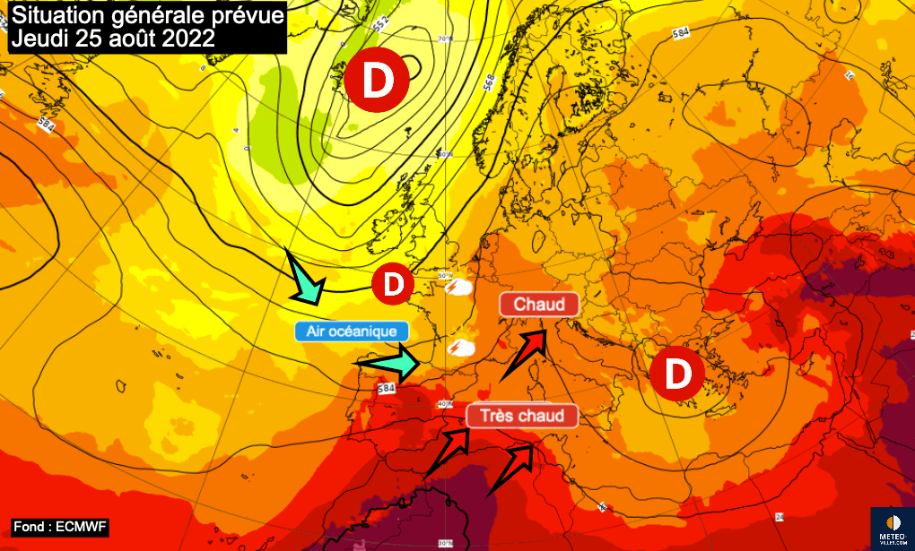 Situation générale prévue - journée du jeudi 25 août 2022 - ECMWF