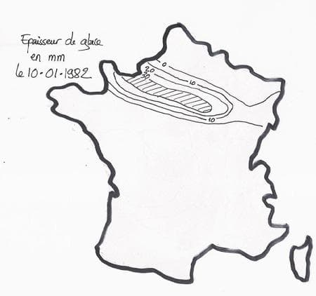 Un épisode hivernal majeur a également concerné le pays durant la première moitié du mois de janvier 1982. Entre le 10 et le 11 janvier, un épisode de pluies verglaçantes intense s’est produit du Calvados à la région parisienne.