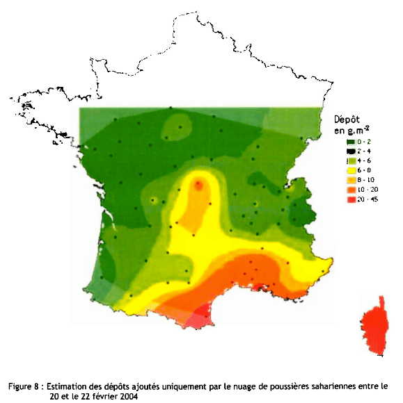 Important dépôt de sable du Sahara à Marseille - 21 février 2004 - Mathieu Camajore via Infoclimat