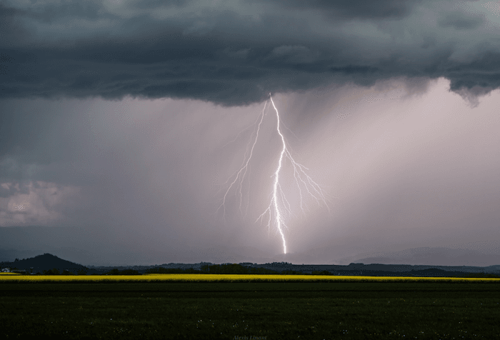 L'activité électrique fut parfois importante sous ces cellules orageuses avec de nombreux impacts de foudre immortalisés par les chasseurs d'orages. Le cliché ci-dessous a été pris par Alexis Linant dans le secteur d'Issoire dans le Puy-de-Dôme, département le plus électrique ce 28 avril 2025. C'est la commune de Foncine-le-Haut dans le Jura qui fut la plus touchée avec 77 éclairs à elle seule !