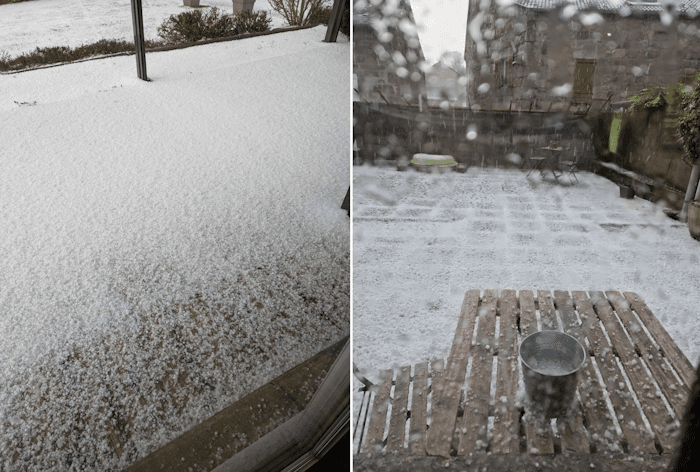 Orage de grêle recouvrant les sols à Tence (43) ce lundi 28 avril 2025 - photos lolo bout & Laurence Chioso