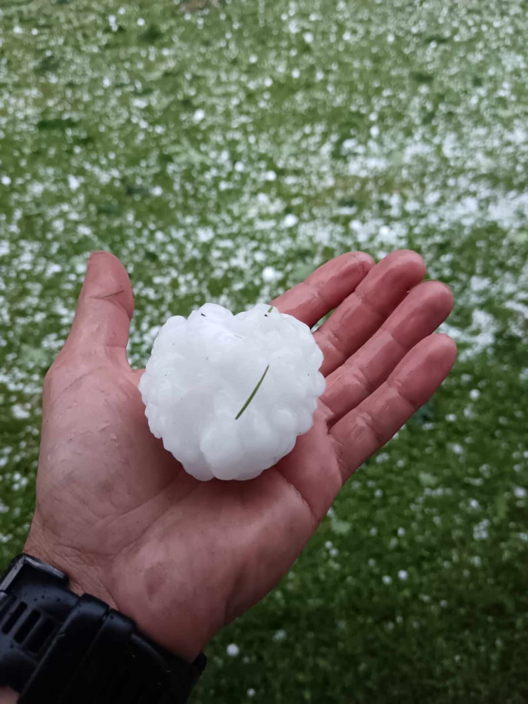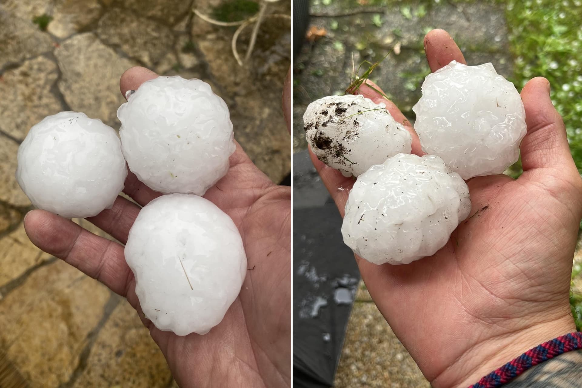 Grêlons de plus de 5cm de diamètre à Saint-Selve en Gironde ce 13 juin au soir - Photos : Patrick Sèruoh & Remi Chadebost