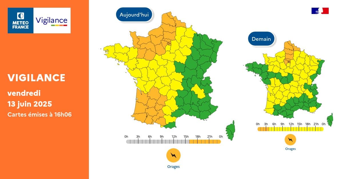 Carte de vigilance du 13 juin 2025 à 16h – Météo-France