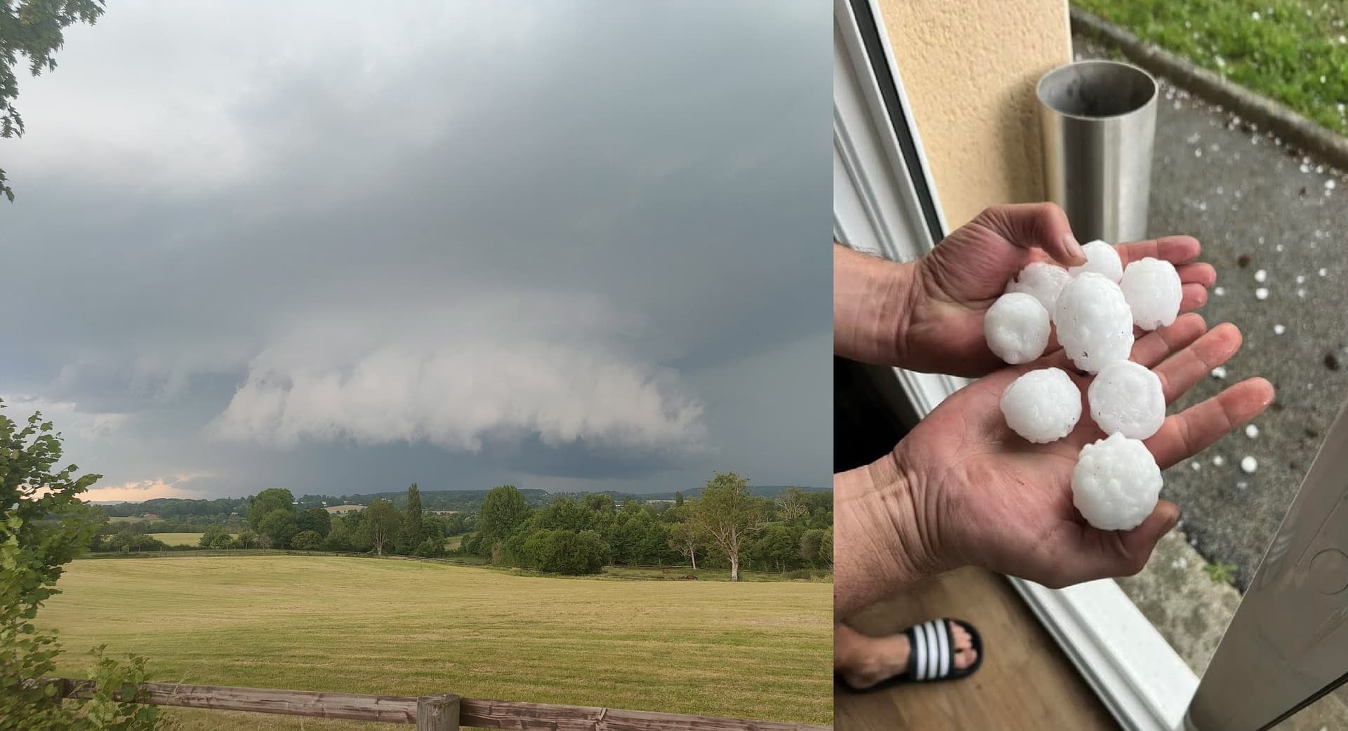 Orage supercellulaire et grêle près d'Alençon dans l'Orne ce 13 juin au soir - Photos via Twitter @EtienneFaregetMC et @Quent1Mqt