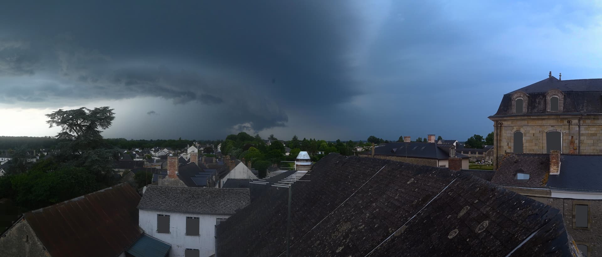 Vue de l'orage supercellulaire sur la Mayenne depuis la webcam d'Evron - via Skaping