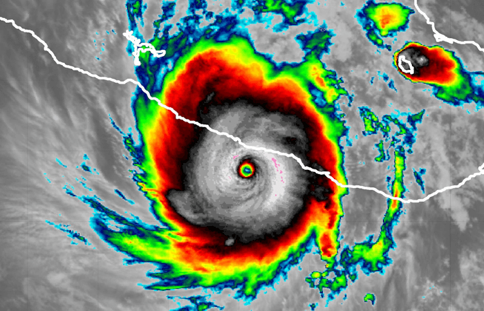 Image satellite de l'ouragan Otis atteignant le Mexique en nuit du 24 au 25 octobre 2023 – via Ventusky