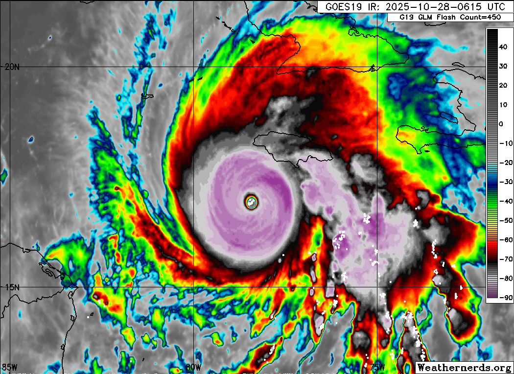 L'ouragan Melissa (catégorie 5) s'approchant de la Jamaïque ce mardi 28 octobre 2025 - weathernerds.org