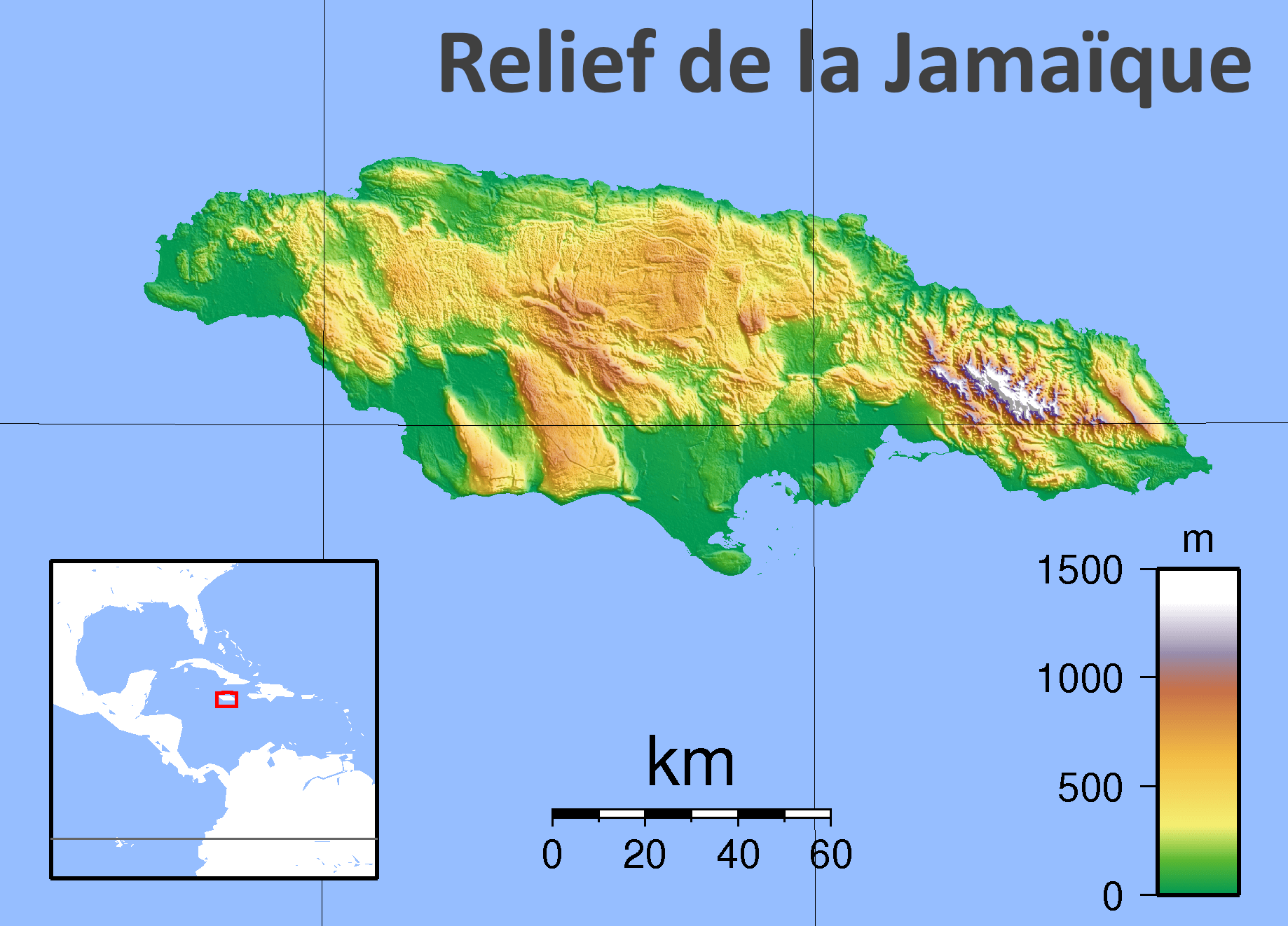 Carte de la topographie de la Jamaïque - wikipedia