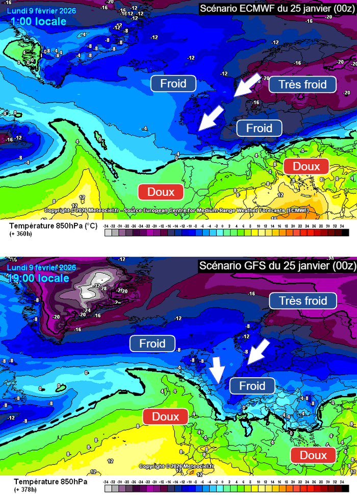 Toutefois, il est important de noter que ces descentes d'air polaire s'étendant jusqu'à la France restent pour le moment lointains et les scénarios plus doux pourraient à nouveau l'emporter comme ce fut le cas ces dernières semaines.