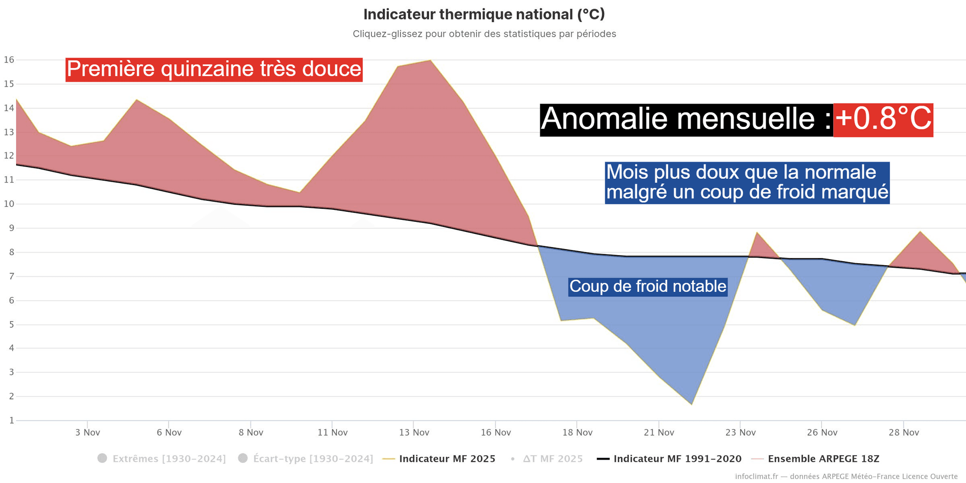 Anomalies de températures en France durant le mois de novembre 2025 – Via infoclimat.fr