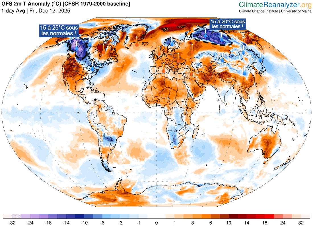 Anomalies de températures sur Terre en ce 12 décembre 2025 – Climate Reanalyzer