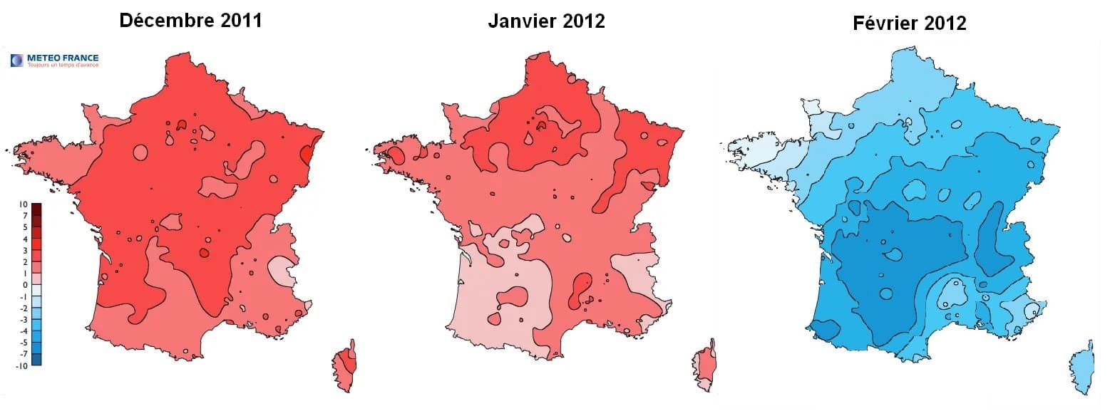Anomalies de températures en décembre 2011, janvier 2012 et février 2012 – Météo-France