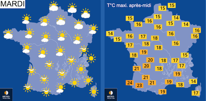 Prévisions METEO-VILLES pour la journée de mardi